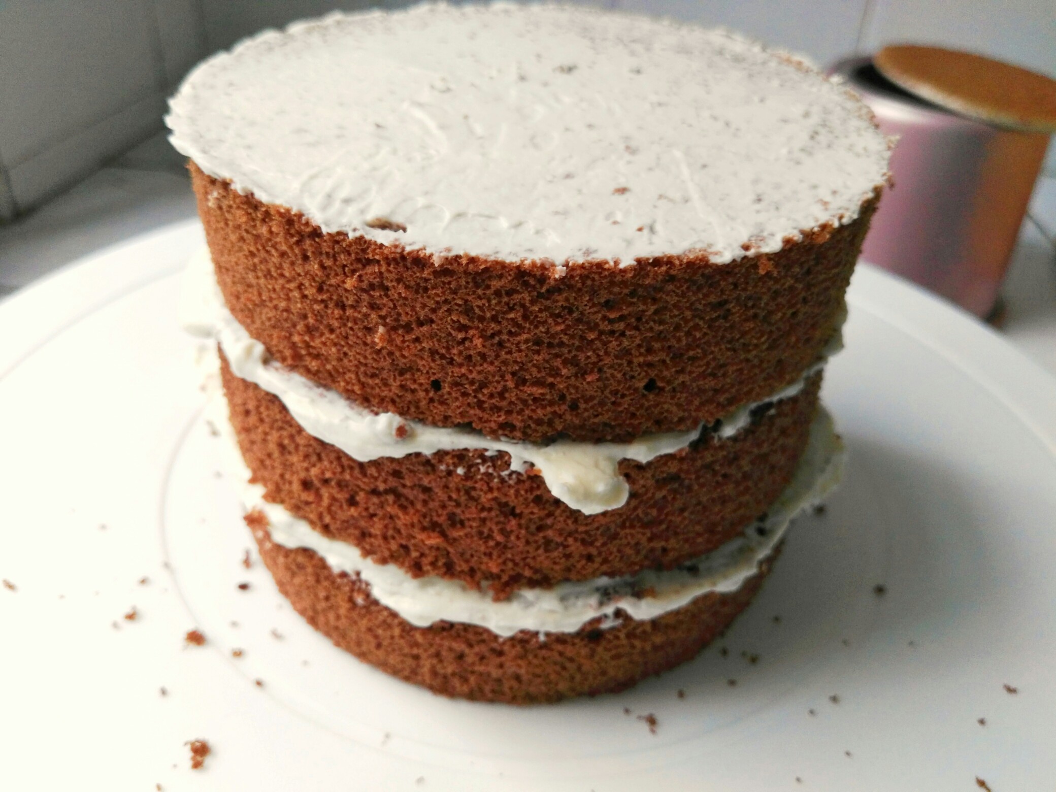 莫有奥利奥,做了个奶油可可戚风,第一次裱花,请老师多指点,谢谢!!