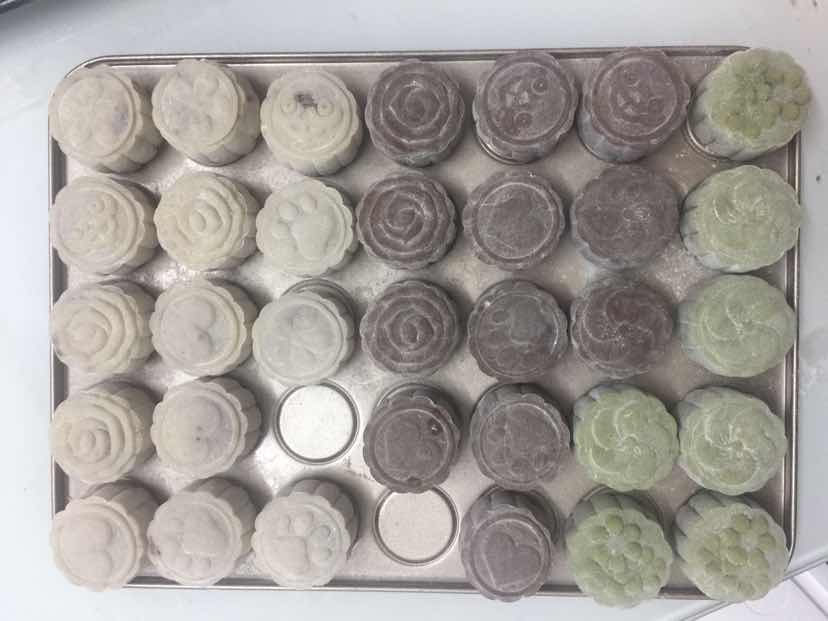 2017中秋自己做的月饼,奶黄流心、抹茶紫薯、巧克力流心、蔓越莓,好吃到停不下来