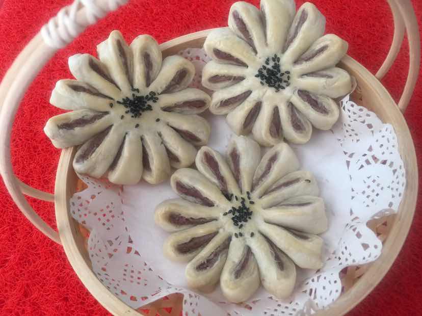 心水很久好看的菊花酥和紫荆花酥,今天用余下的豆沙馅儿包了,喜欢