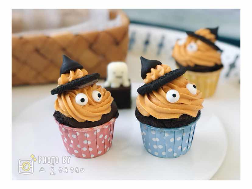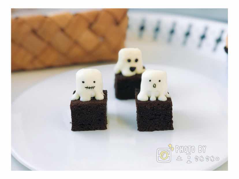 前两天做的万圣节甜品!鬼怪摩卡蛋糕+小鬼布朗尼+南瓜小饼干