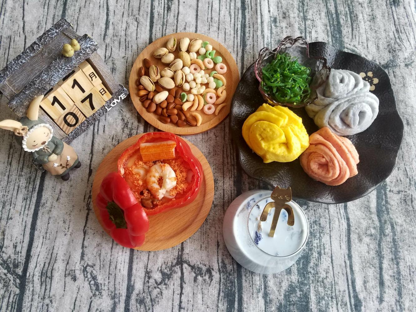 三色馒头+谷物坚果+海鲜蒸蛋