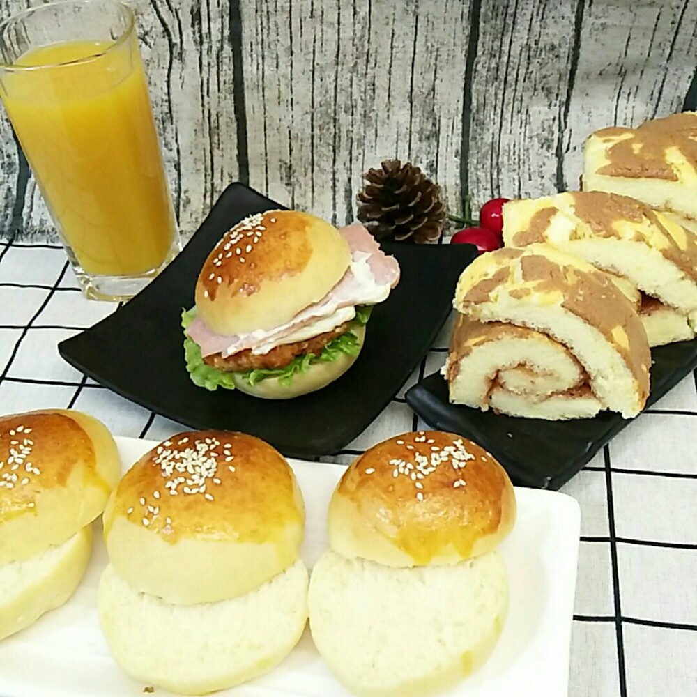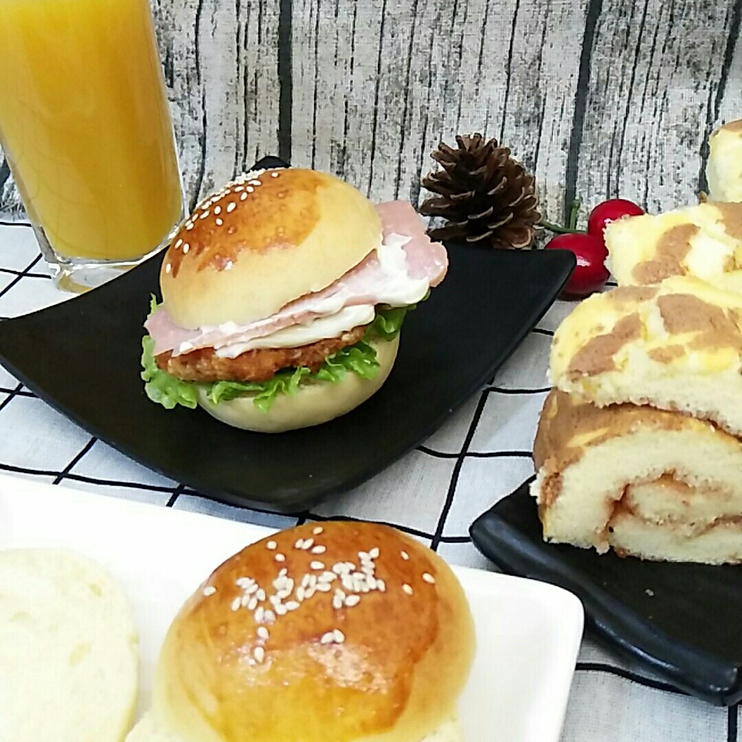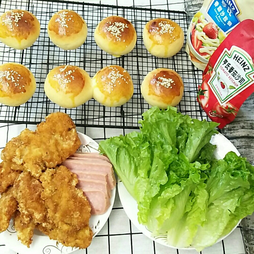 大宝最爱的汉堡,做好的汉堡胚,他自己动手包