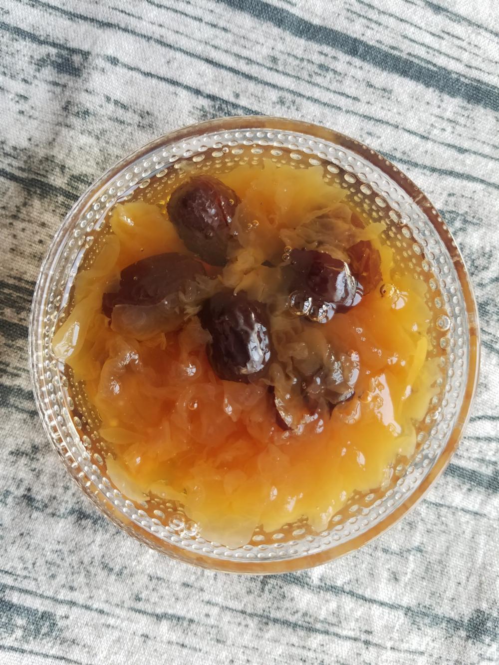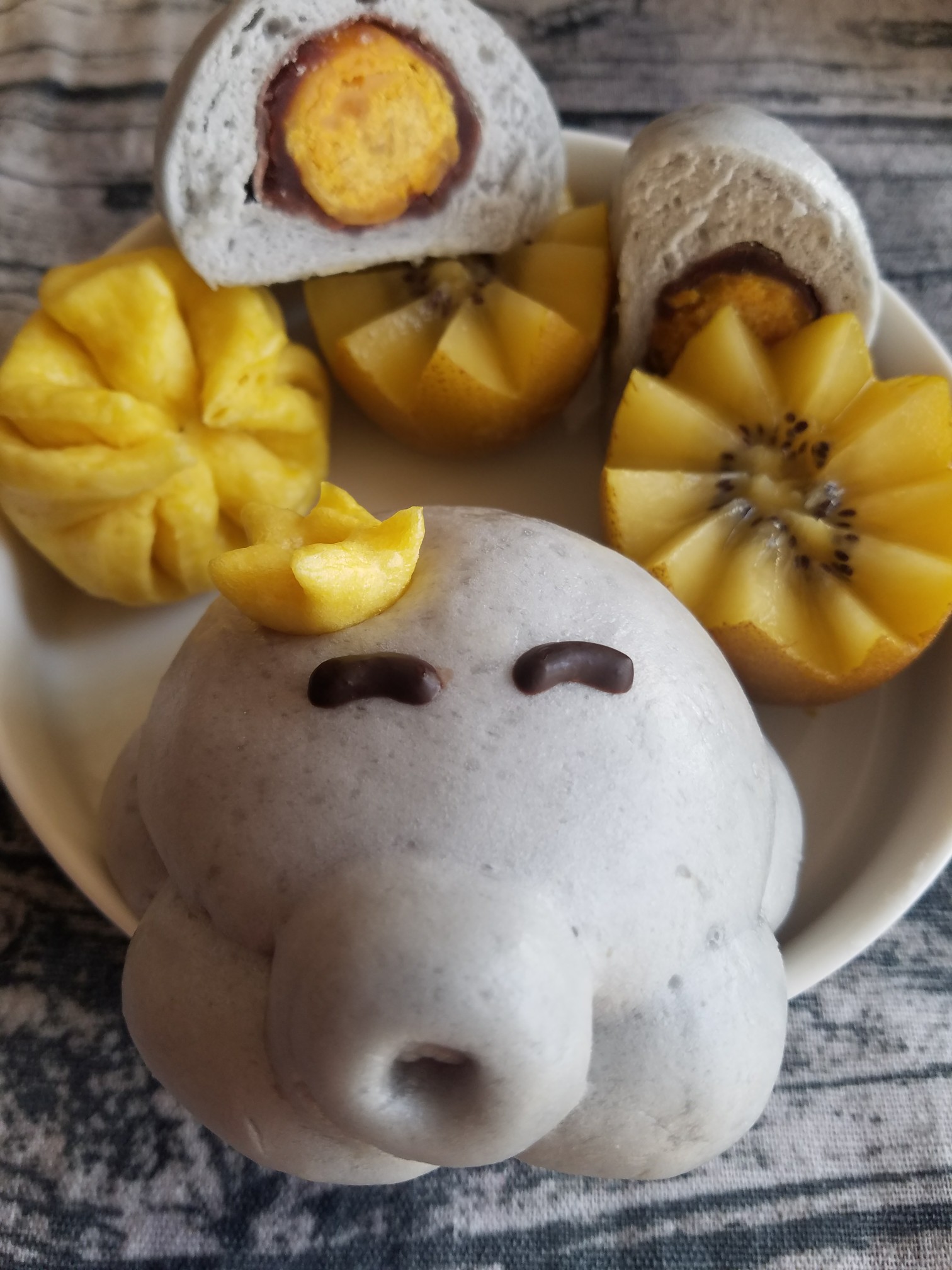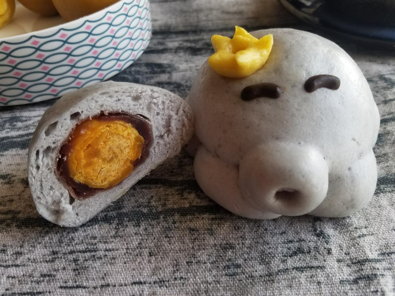 南瓜培根玉米粒+章鱼蛋黄豆沙包+银耳汤