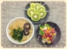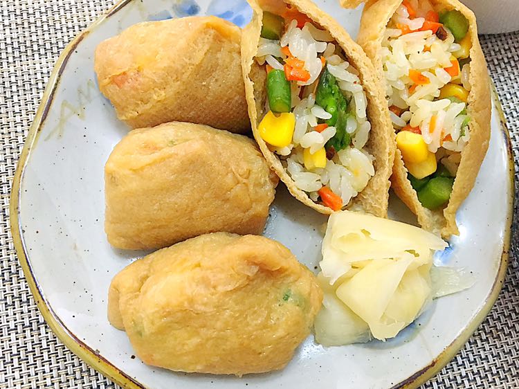 #早餐# 稲荷饭包(一种醋米饭一种蔬菜拌饭)、冰糖红豆汤、蔬菜沙拉、西瓜