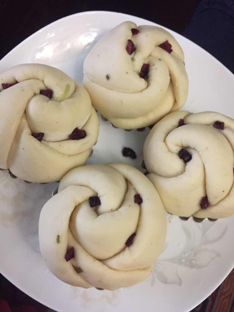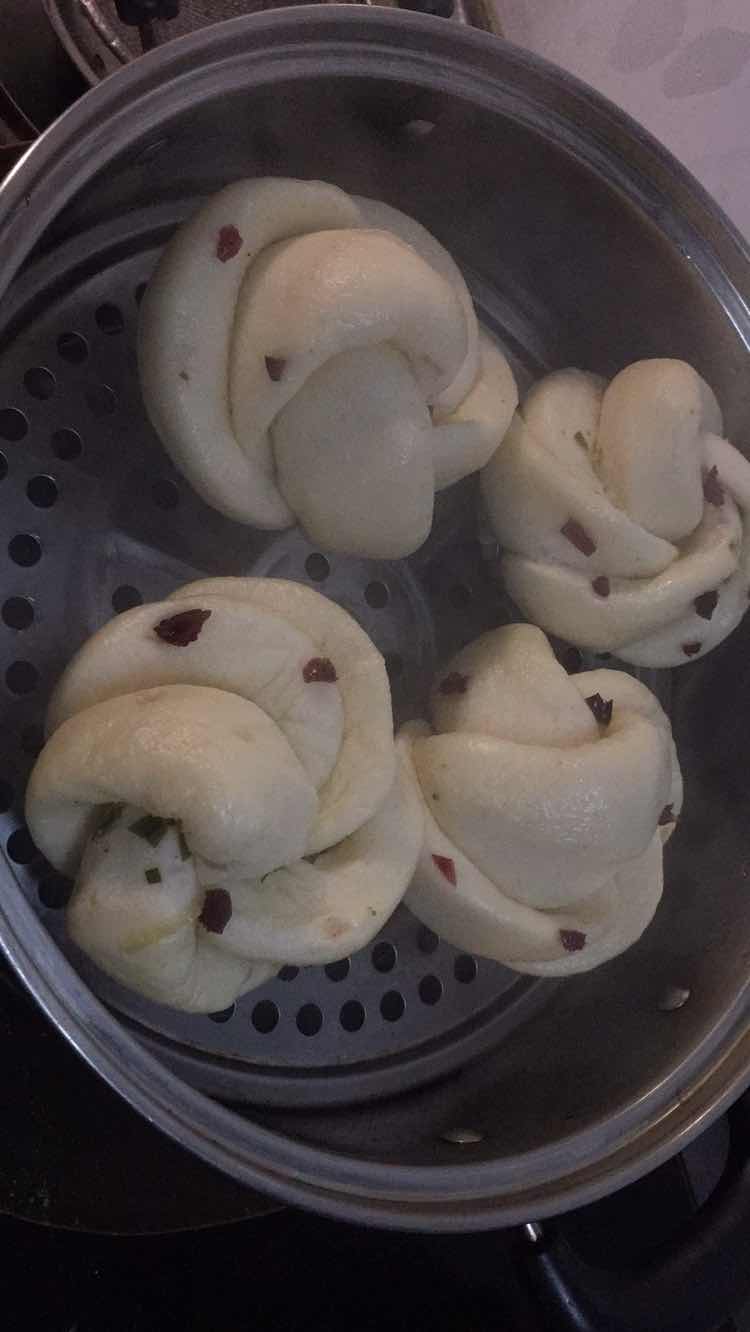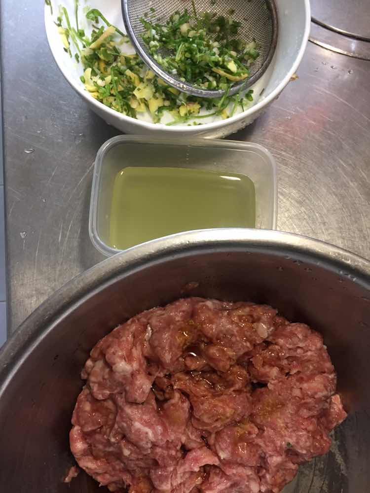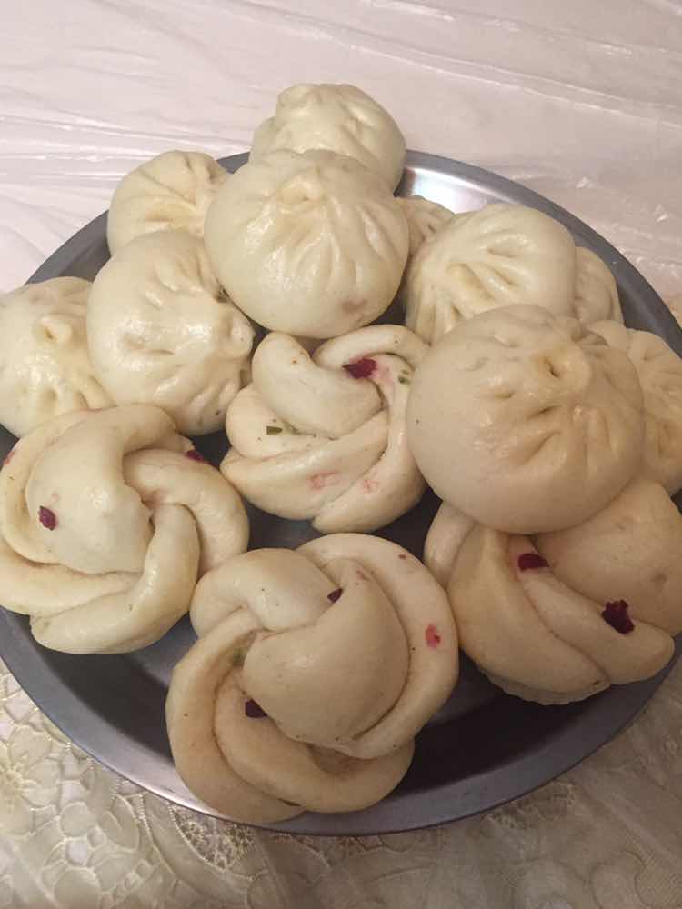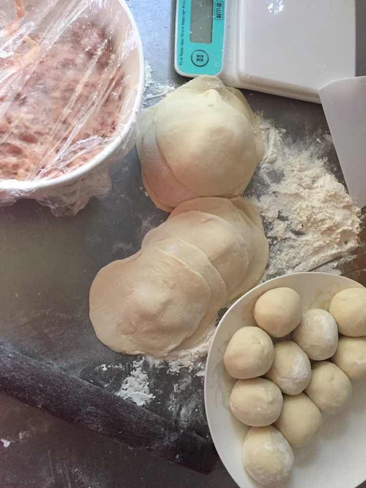 中筋面粉500克、酵母5克、泡打粉5克、糖10克、水180克,夹心肉糜500克、葱姜水60克、温水110克、胡椒粉1克、老抽生抽各5克、糖5克、味精5克。包子面团35克一个。花卷(猪油葱末椒盐少许)