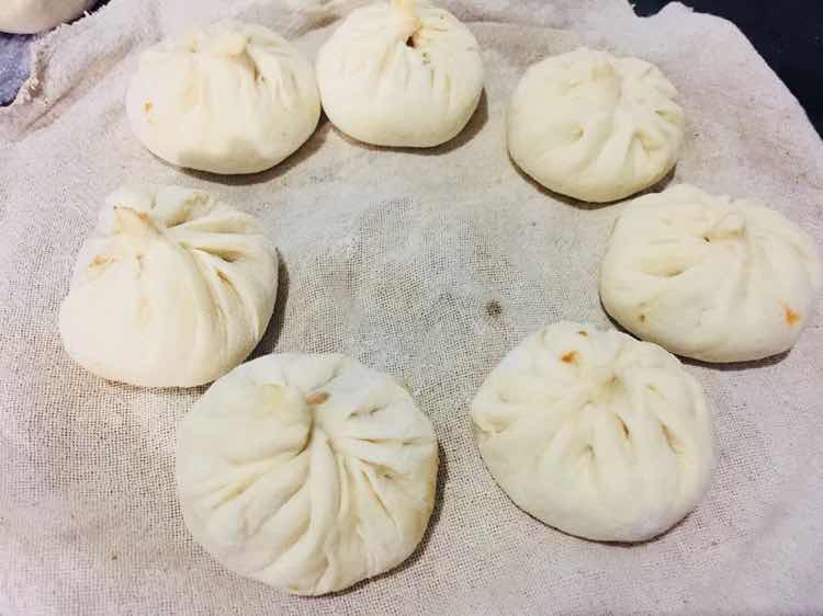 300克面粉,3克发酵粉,20克糖,85克水,300克夹心肉,褶皱不好看,继续加油