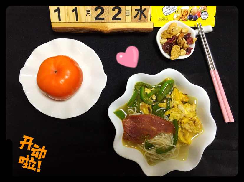 早餐记:青椒鸡蛋面