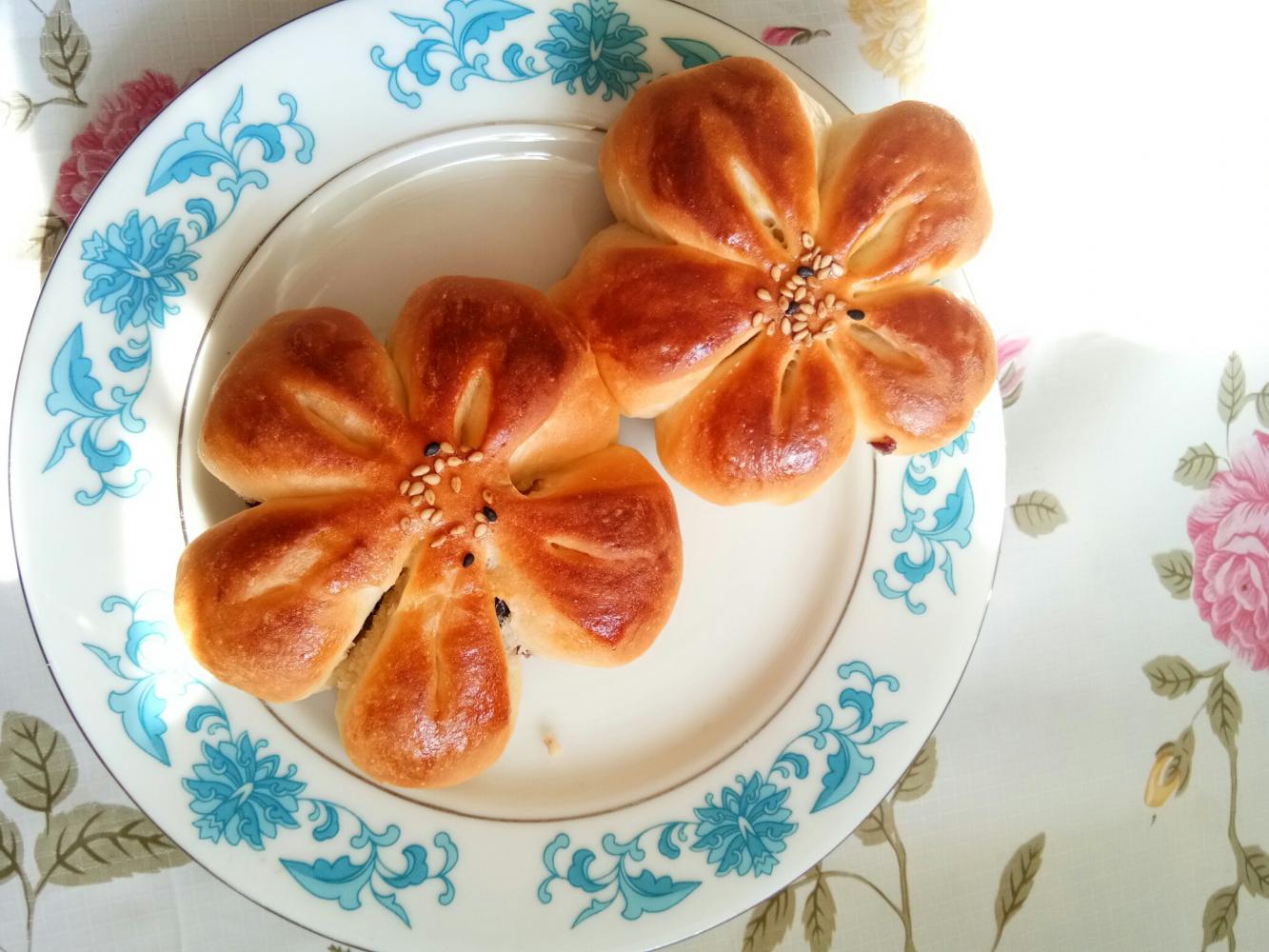 做酥皮剩的椰蓉馅,正好有暖气,可以做面包了