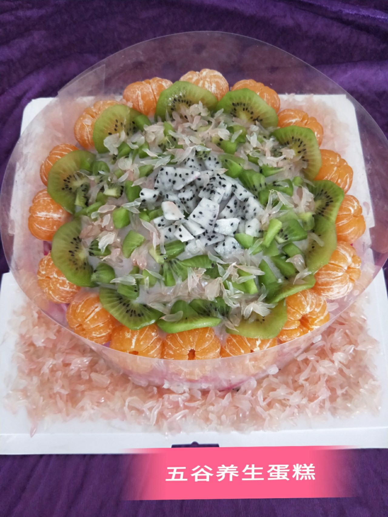 【五谷青汁养生蛋糕[蛋糕]】 什么是养生蛋糕呢?[蛋糕] 就是没有奶油、色素 没有添加剂的健康蛋糕 只有青汁 只有水果 只有芋泥 一款中式五谷蛋糕[蛋糕]