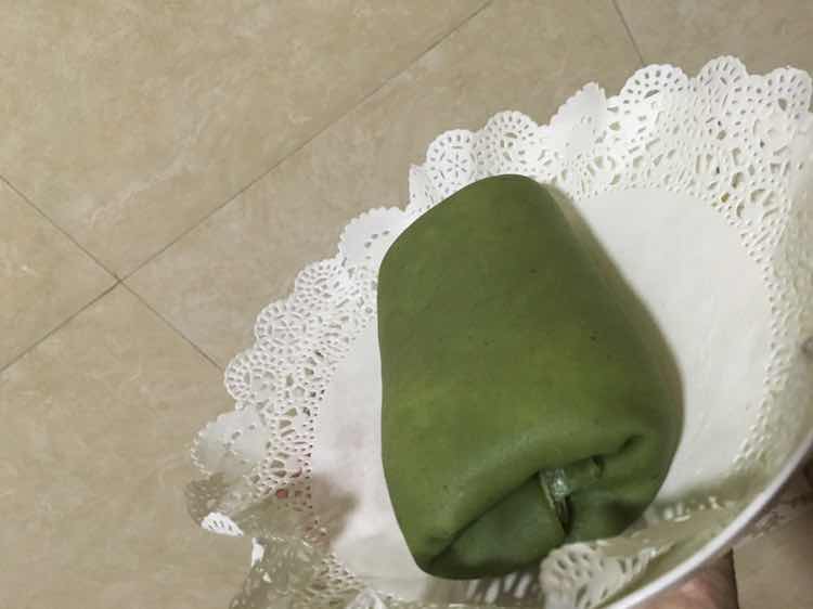第一次做毛巾卷,用的科麦抹茶粉做出来颜色不怎么漂亮