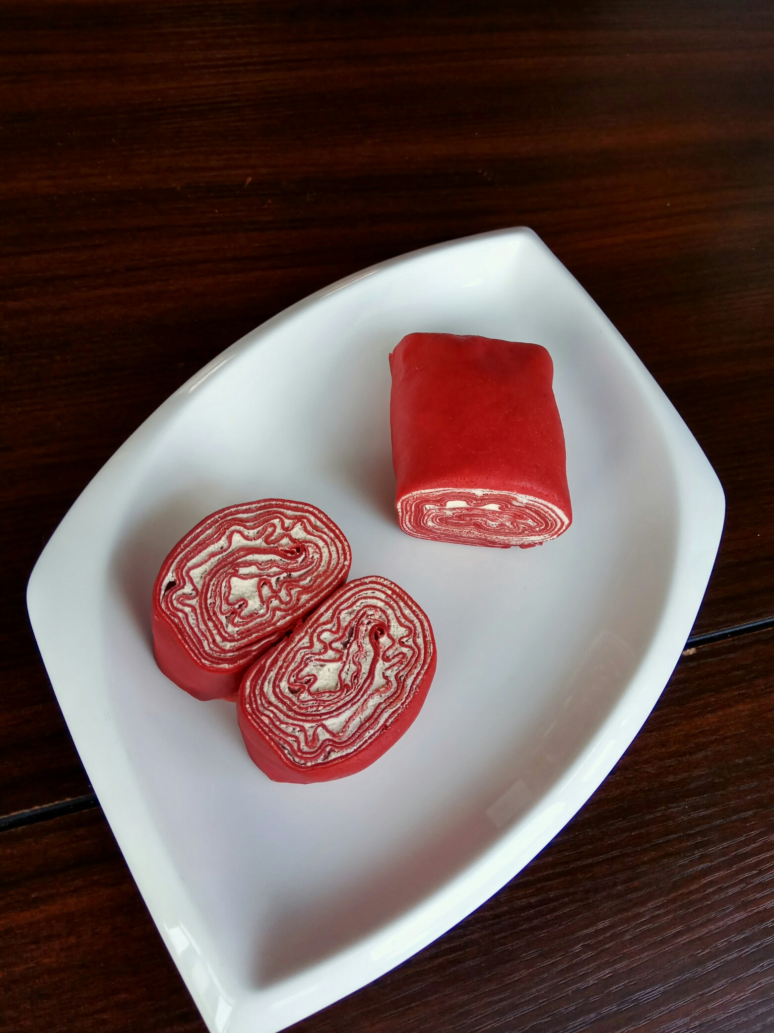 红丝绒毛巾卷 鲜艳的红给寒冷的冬带来一丝暖 感谢老师 感谢平台