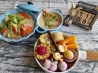 三文鱼蔬菜拼+土豆绸鱼烧+红火龙牛奶