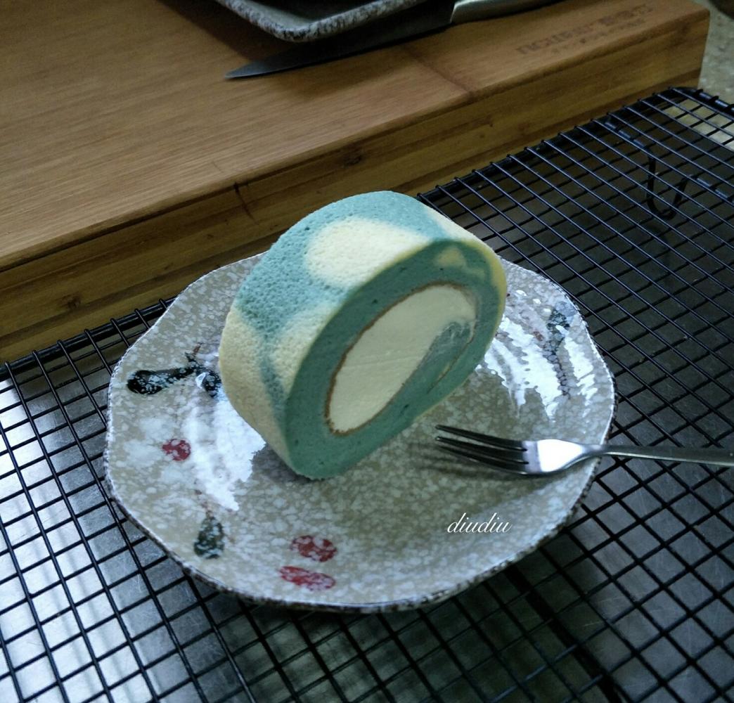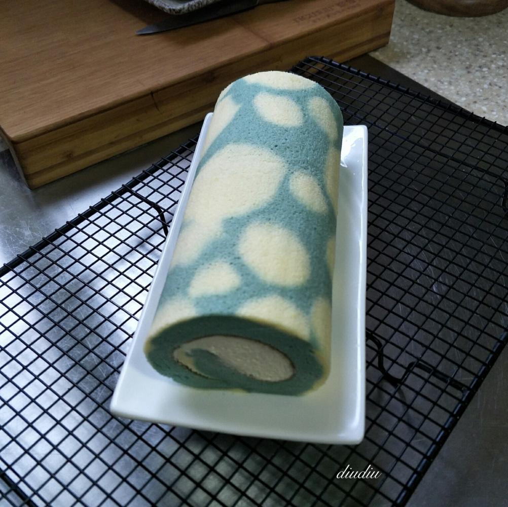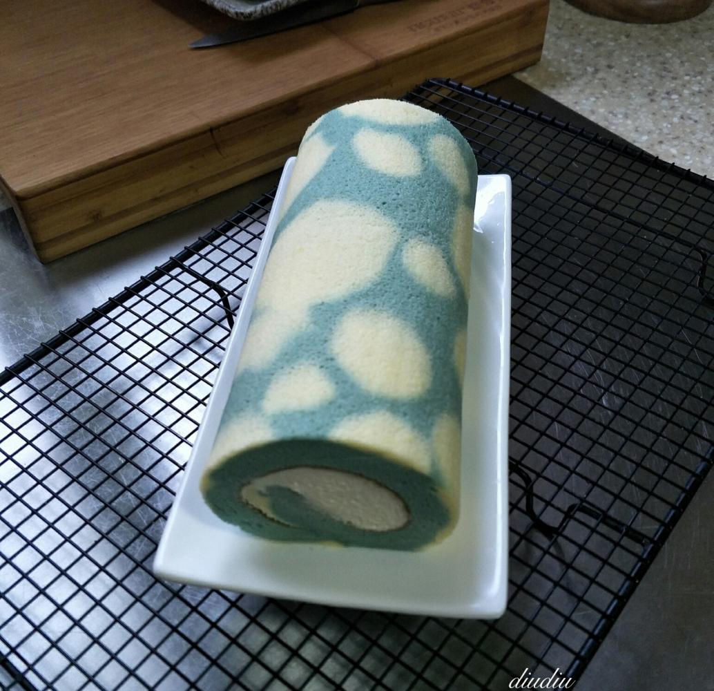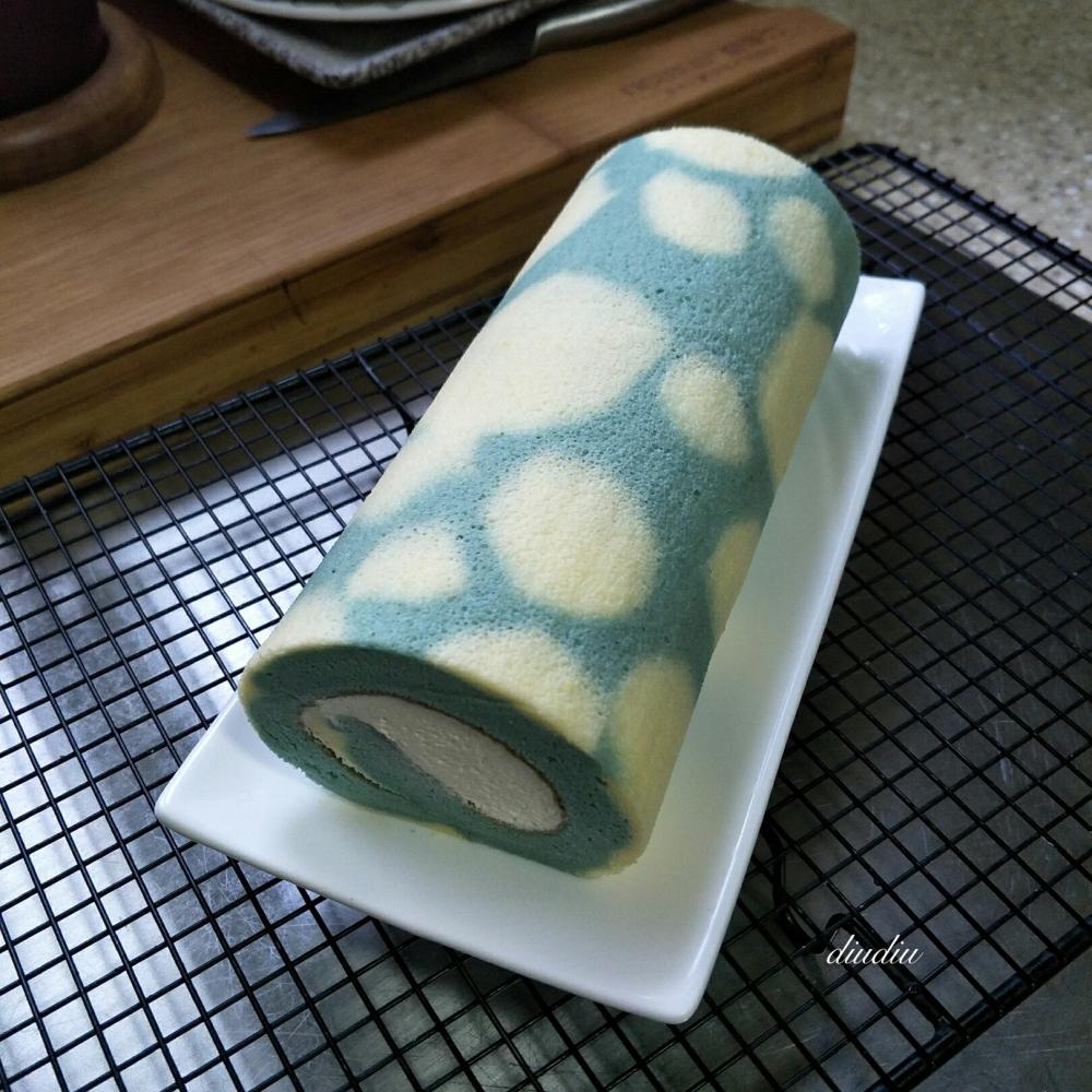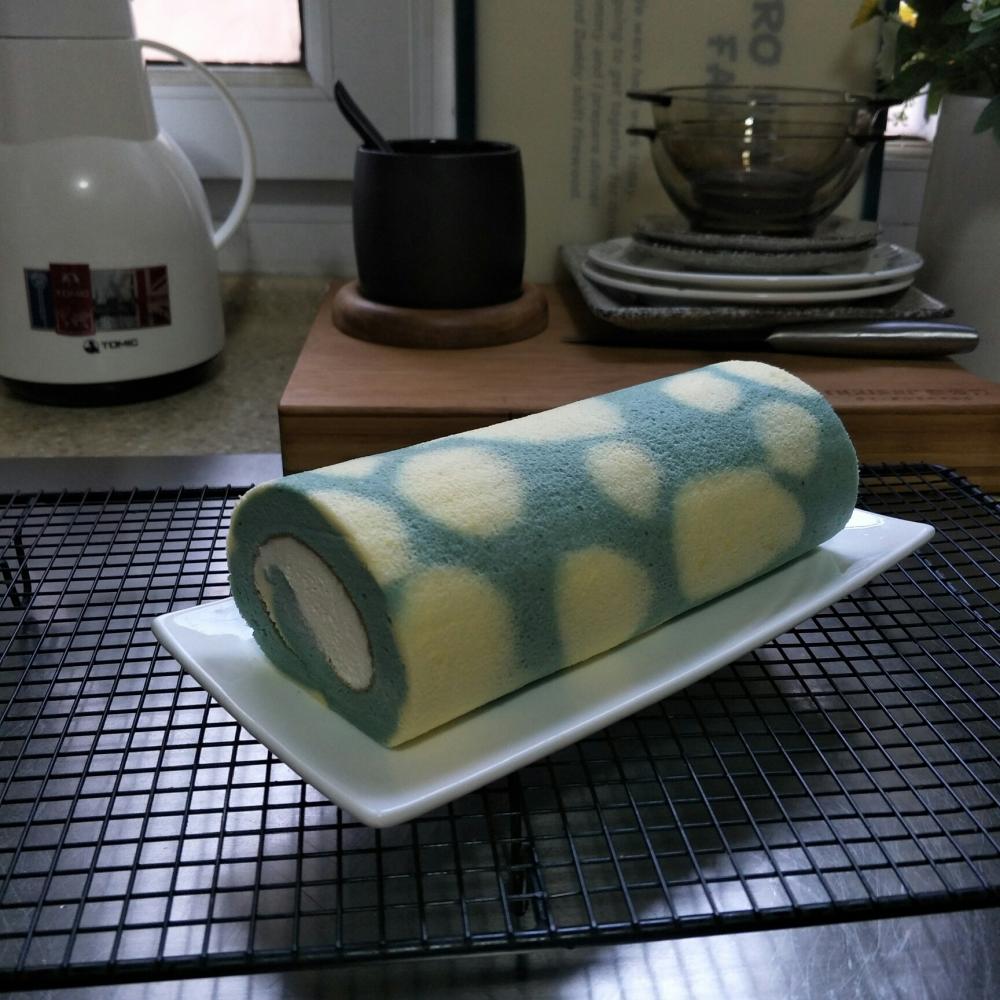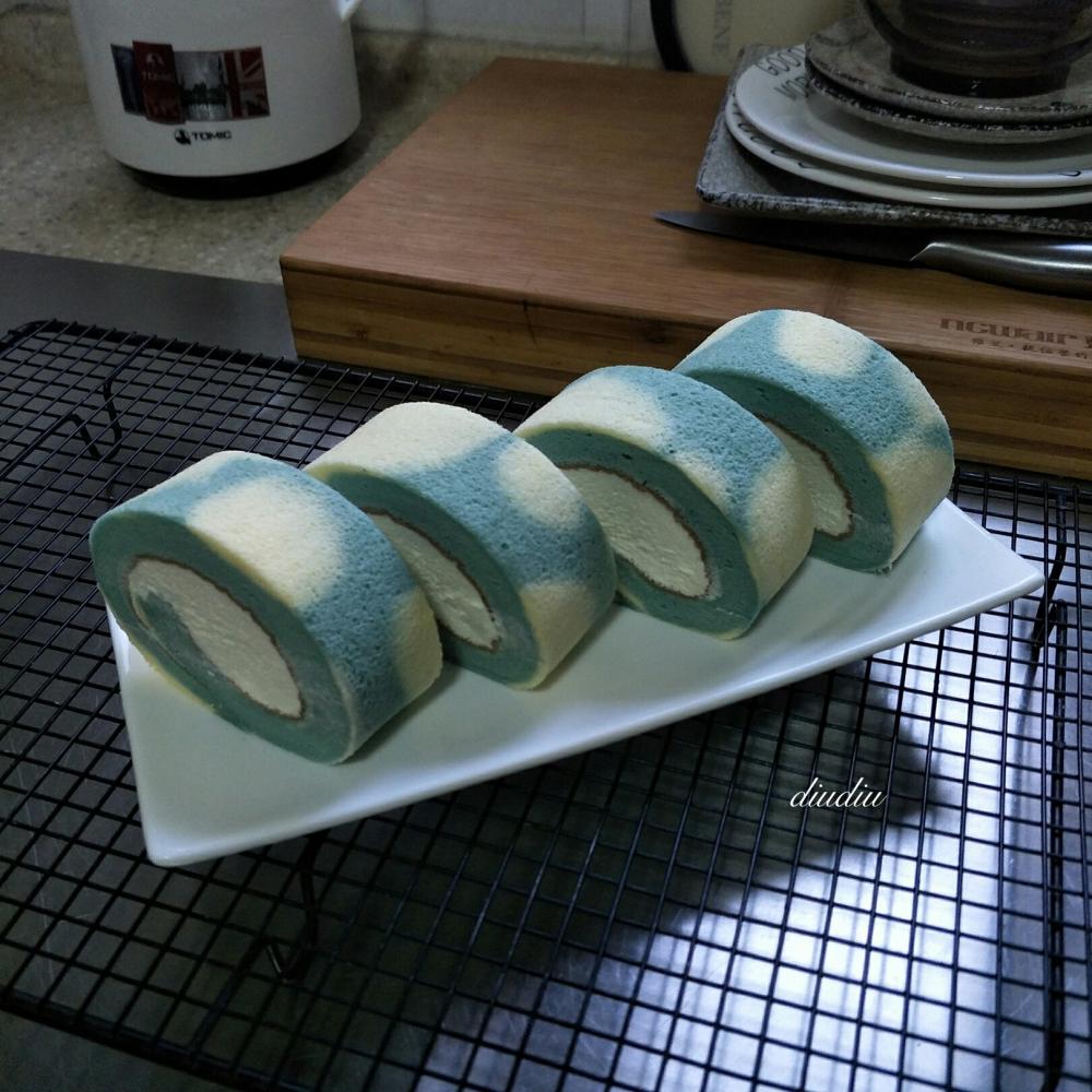 蓝天白云奶油卷—— 这是一款以环保为题材的卷卷… 用到了蝶豆花泡出的天然色素蓝汁(富含花青素),健康、环保、淡雅,口感温润、自然清新…