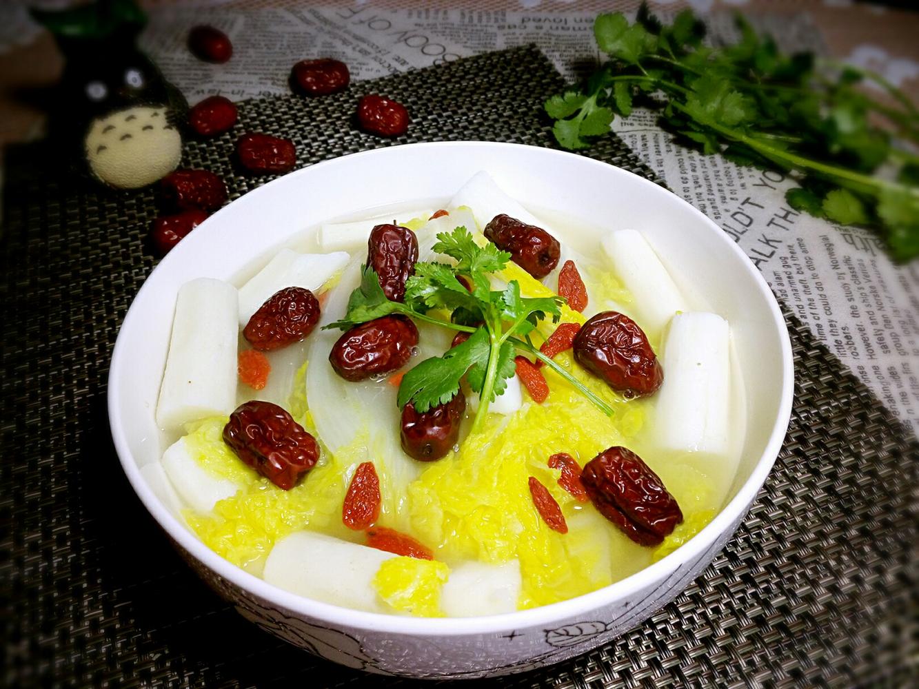 山药补益强身。补而不热,温而不燥,常吃有益无害,山药还有补肺润燥作用。山药补脾的同时,还能补肾。而枸杞子常常被当作滋补调养和抗衰老的良药。红枣有补血养颜增强免疫力的功效。这道汤健康、美味又养颜。