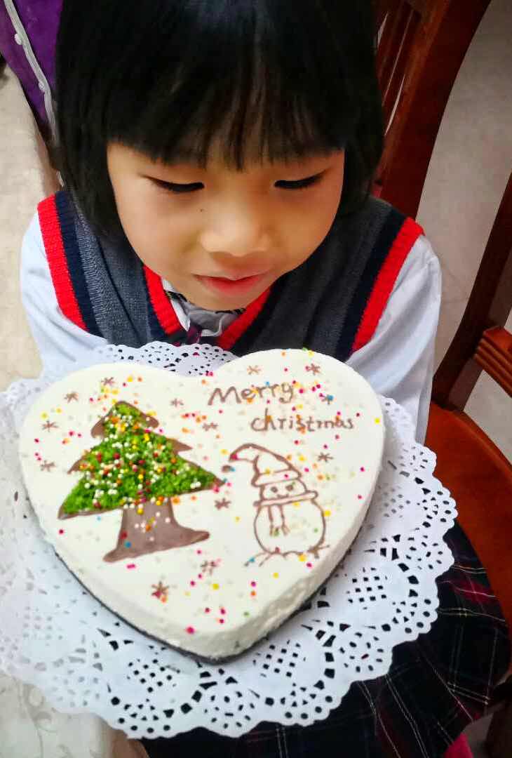为母则刚,虽然曾经的妈妈啥也不会,但为了你们的健康,妈妈愿意挑战一切的不可能! 圣诞节前,宝贝女儿就说过好希望有一个有圣诞树的蛋糕,虽然我天生对画画完全白痴,但女儿的一句话还是让我心生勇敢,挑战极限! 最后成品虽不完美,但女儿已是乐开了花一样!
