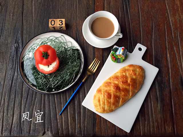 番茄鸡蛋盅+面包+咖啡