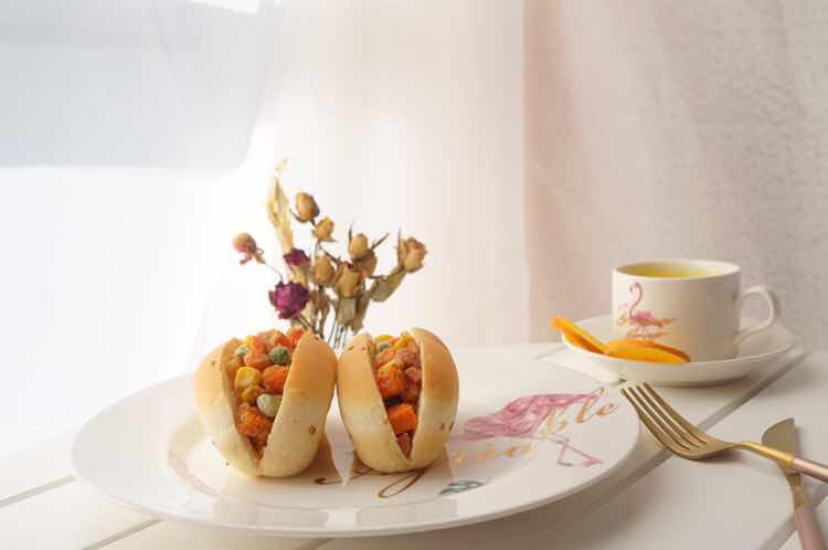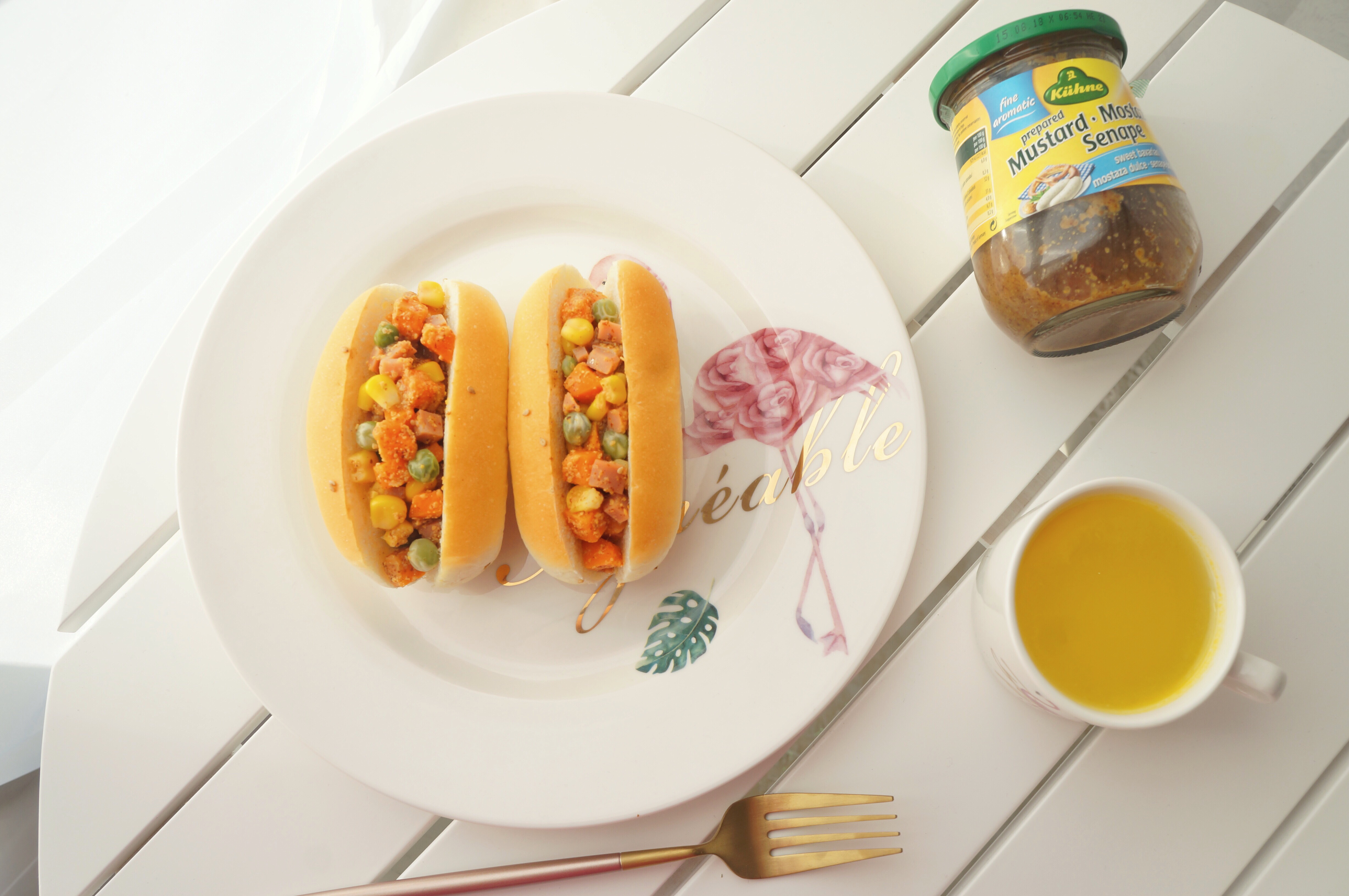 营养丰富的早餐,德国芥末沙拉船。非常开胃