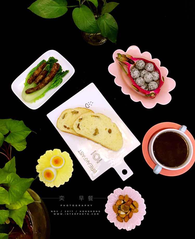 今日早餐:列巴~脆皮肠~小青菜~鸡蛋~黑米粥~火龙果~~~