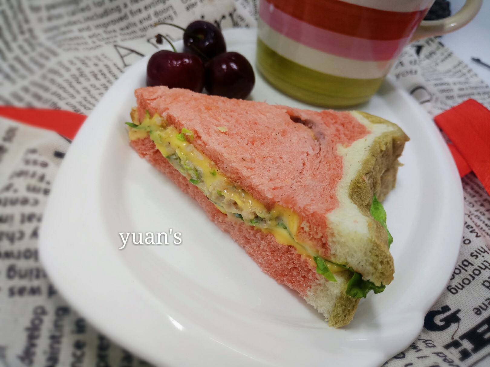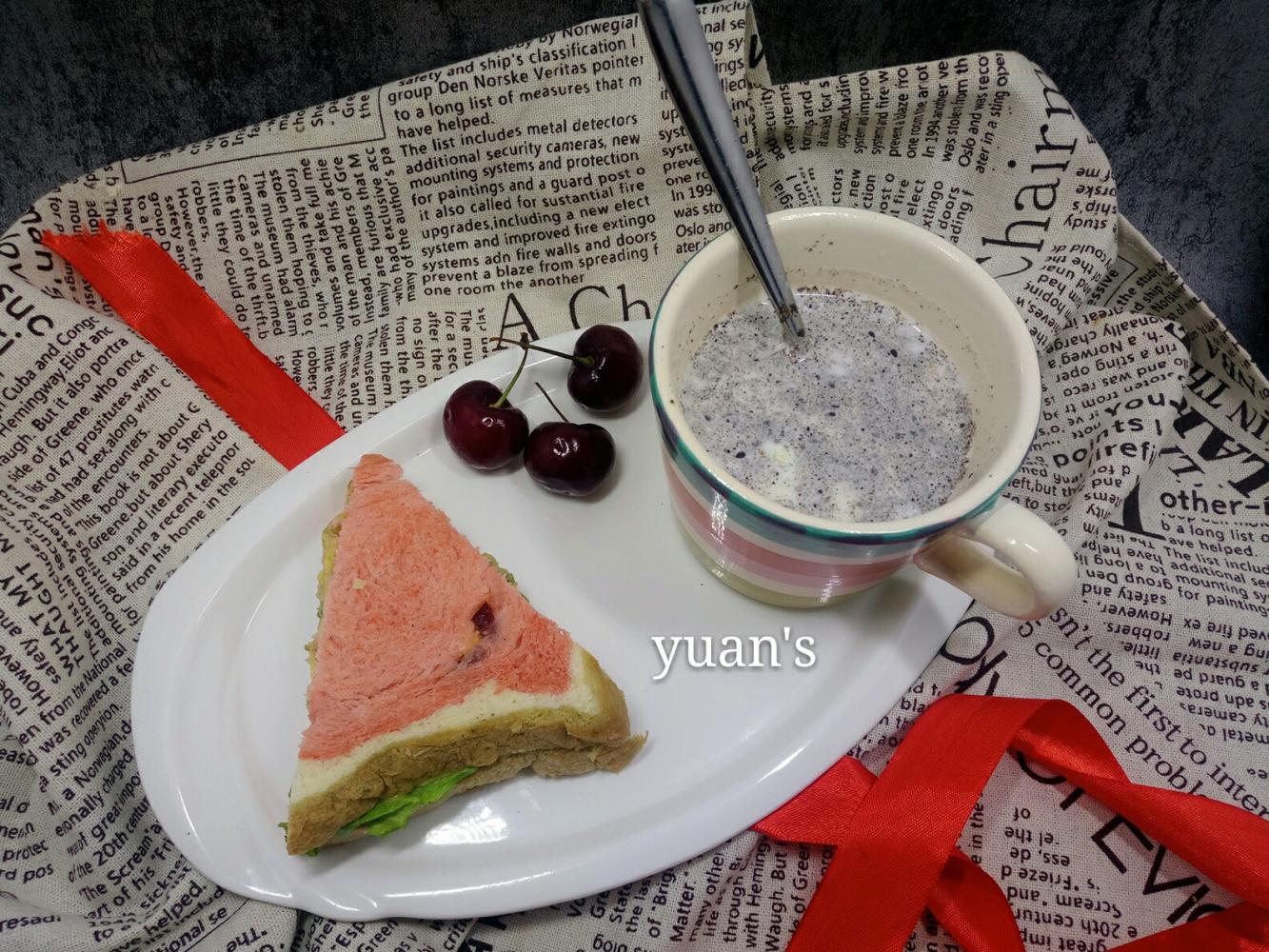 一早做馄饨,孩儿偏要吃三明治,就用馄饨馅做了个三明治。