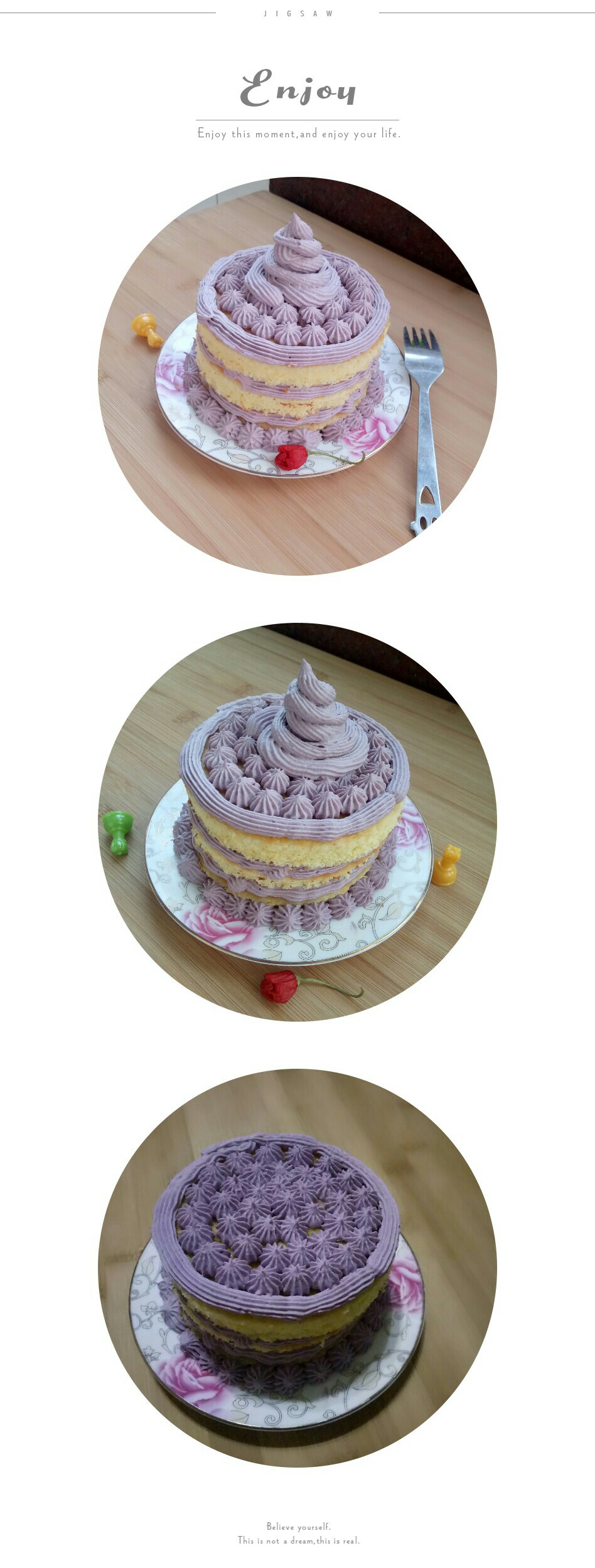 周五跟老师学了这款蛋糕,周六就动手试做了,芋泥紫薯淡奶油混合后蛮好吃的