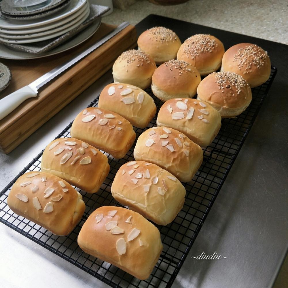 肉松咸蛋黄、红豆沙餐包及汉堡胚
