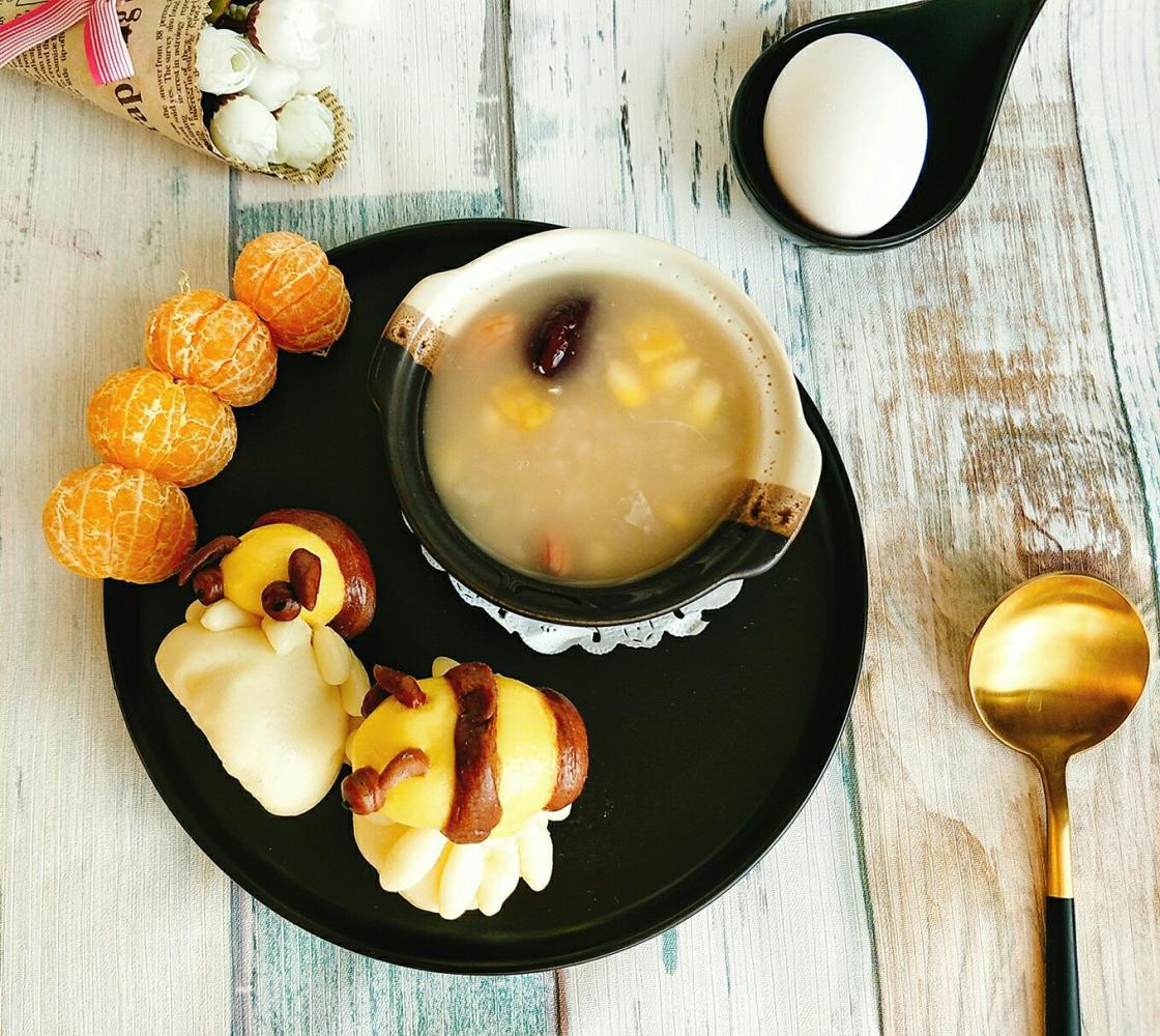 小蜜蜂奶黄包+腊八粥+白煮蛋+砂糖橘