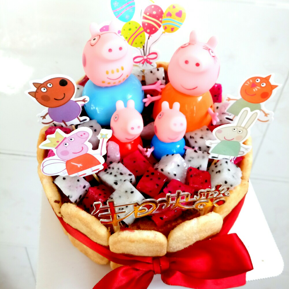 朋友家小孩过生日,但不想让娃吃奶油,所以就做了款无奶油版的小猪佩奇生日蛋糕!