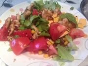鸡胸肉 生菜 西红柿 青豆 玉米 芝士片 葡萄干 黑芝麻 白芝麻 黑胡椒 盐 鸡精 料酒 淀粉 生抽 柠檬汁