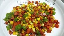食材: 玉米 胡萝卜 青椒 火腿肠 盐 糖