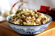 米饭 土豆丁 白萝卜 青椒 辣萝卜丁 卤鸡腿 盐 生抽 花生油