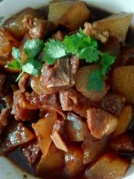 五花肉焖白萝卜步骤图食材: 五花肉 白萝卜 生姜 大蒜 葱 盐 白糖 生抽 老抽 蚝油(0人做过)