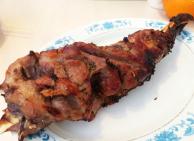 烤羊腿步骤图食材: 羊腿 料酒 生抽 盐 胡椒粉 孜然粉 蜂蜜水 食用油(0人做过)