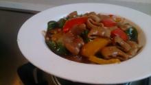 食材: 肥肠 黄彩椒 红彩椒 柿子椒 洋葱