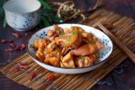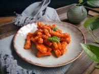 食材: 里脊肉 白酒 胡椒粉 盐 姜 淀粉 番茄酱 泰式甜辣酱 白糖 熟芝麻
