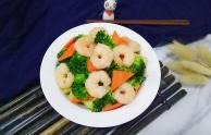 食材: 虾仁 西兰花 胡萝卜 葱 大蒜 蚝油 味极鲜 鸡粉