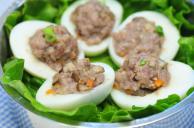 蒸酿蛋步骤图食材: 鸡蛋 猪肉 香菇 胡萝卜 盐 食用油 胡椒粉(0人做过)