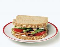 火鸡三明治步骤图食材: 火鸡胸肉 全麦餐包 奶酪 西红柿 黄瓜 红洋葱 青椒 莴苣 色拉酱(0人做过)