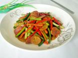 盖上盖子,闷煮个五分钟,让其入味,再下红椒丝炒匀即可