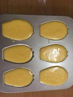 将冷藏好的面糊回温,拌匀后装入裱花袋,挤入玛德琳模具内