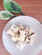 晾凉后倒出来,先切条再切块。我用的 学厨的日本钢面包刀切的。晚上切的块,厨房光线暗,拍照有些失色。