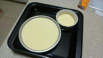 放入装有冷水的烤盘中 放入预热好的烤箱中水浴法150℃30分钟 125℃30分钟