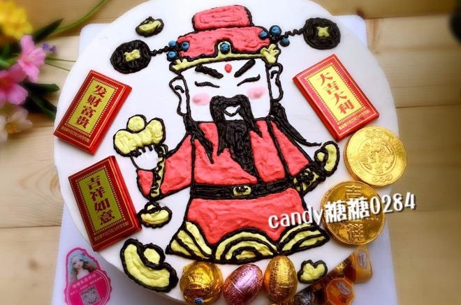 别人做的财神爷水果奶油蛋糕,已经有