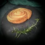 两两一组,排入模具中(不沾模可以不用处理,普通模具我垫了油纸防粘)。卷的时候,特别是边上那两条,要特别注意方向。成对的两条是相对方向的,也就是说一条从左往右卷,一条从右往左卷。我有一个卷完以后发现方向不对,所以破罐子破摔就把边角料也扔进去一起烤了(反正造型也不对了= =)