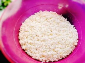 把糯米倒入大的盆子里