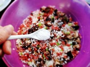 腌料倒入糯米里