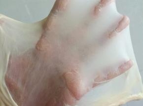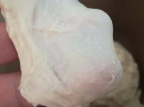 大概10分钟后,拿出一小块面团,检查状态,可以拉出图片中的膜。可以再继续搅拌2-3分钟。