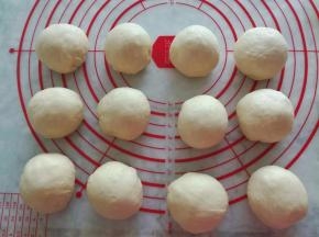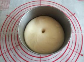 30分钟以后,面团明显变大,用手指蘸面粉搓一个洞,不回缩,醒发结束。