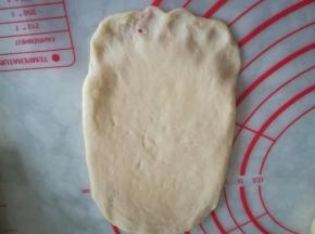 发酵好的状态,体积明显变大,用手指按一下,按下去会回弹,发酵结束,拿出烤盘,预热烤箱180度。