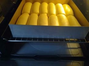 送入烤箱进行二次发酵,为了保持烤箱内的水份,烤箱里面放一碗温水。我的温度是38度发酵45分钟。
