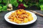 炒肉的时候加点水果,是粤菜的习惯。炒里脊肉的时候加菠萝,是粤菜的经典,闻名海内外,叫做菠萝咕噜肉。猪肉外酥里嫩,酸甜适口,非常好吃。